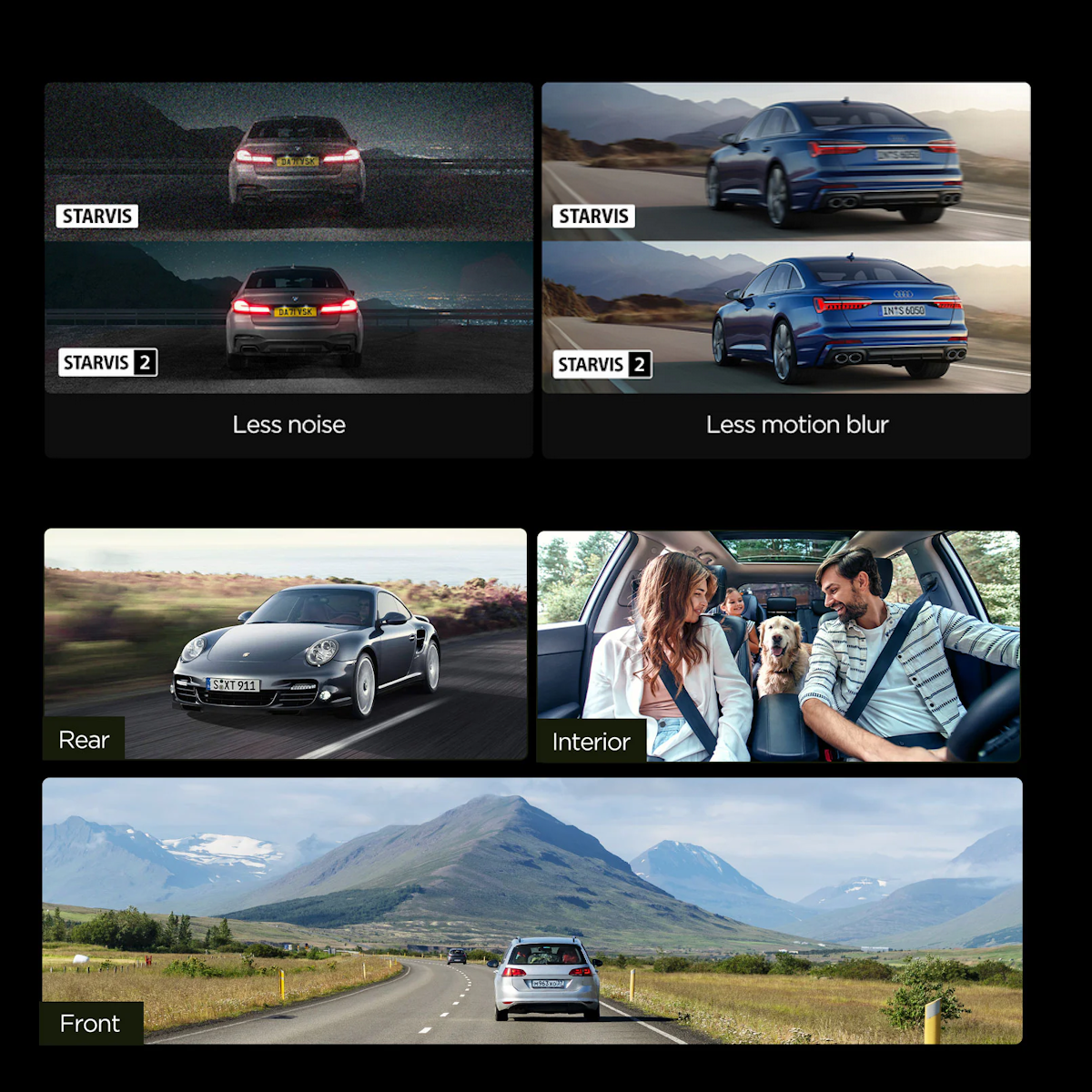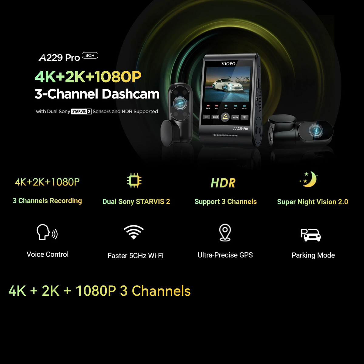 A229 Pro is the industry's first dashcam using two flagship Sony STARVIS 2 image sensors, respectively for front and rear cameras. The two sensors, namely the IMX678 and IMX675, offer wider dynamic range and higher light sensitivity than the STARVIS tech, bringing much less noise and motion blur during day & night recording.