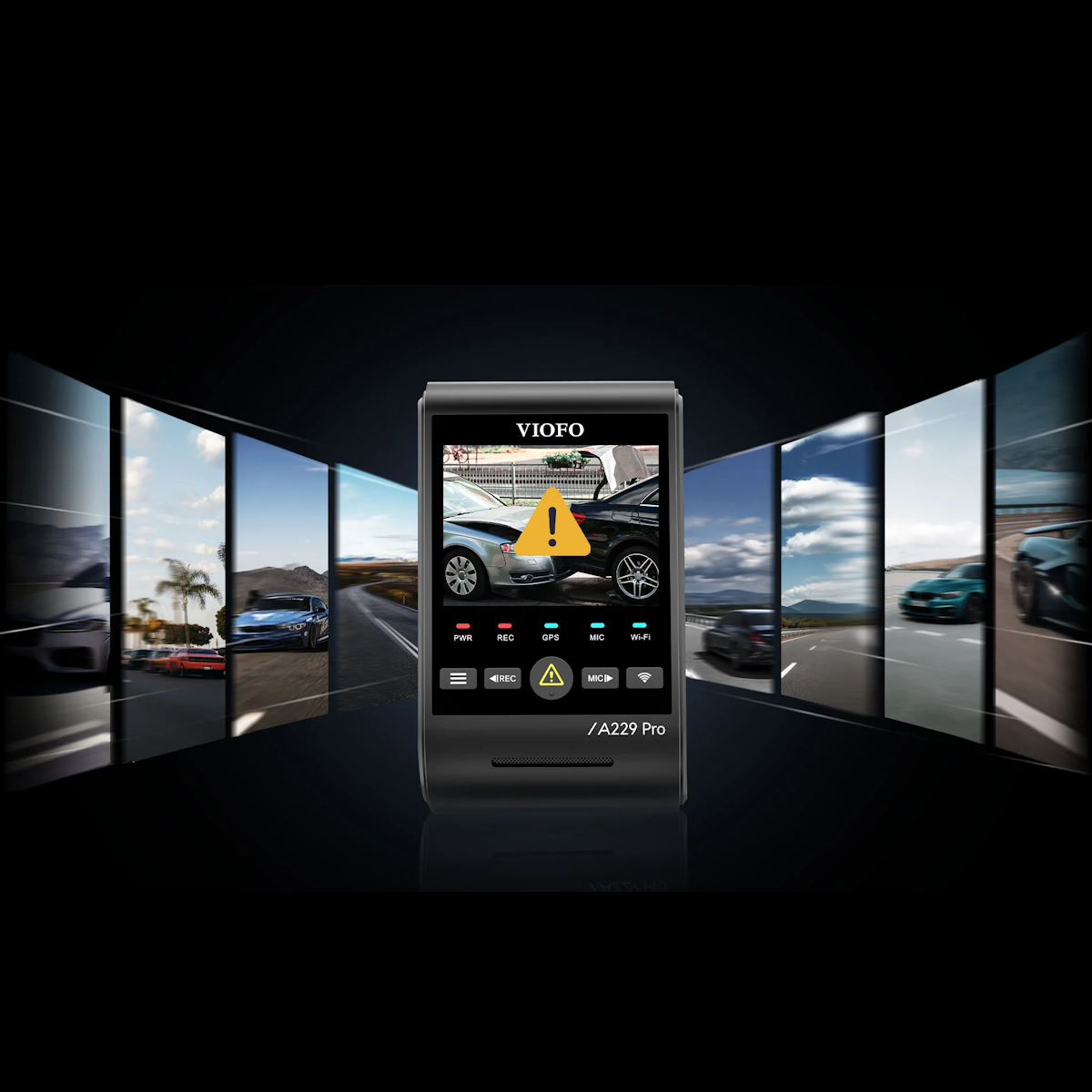 A229 Pro supports seamless loop recording and overwrites the oldest videos with the last ones. With the built-in G-sensor, the dashcam will automatically lock the footage in case of collision or crash. Footage can also be manually locked using the center button on the camera.